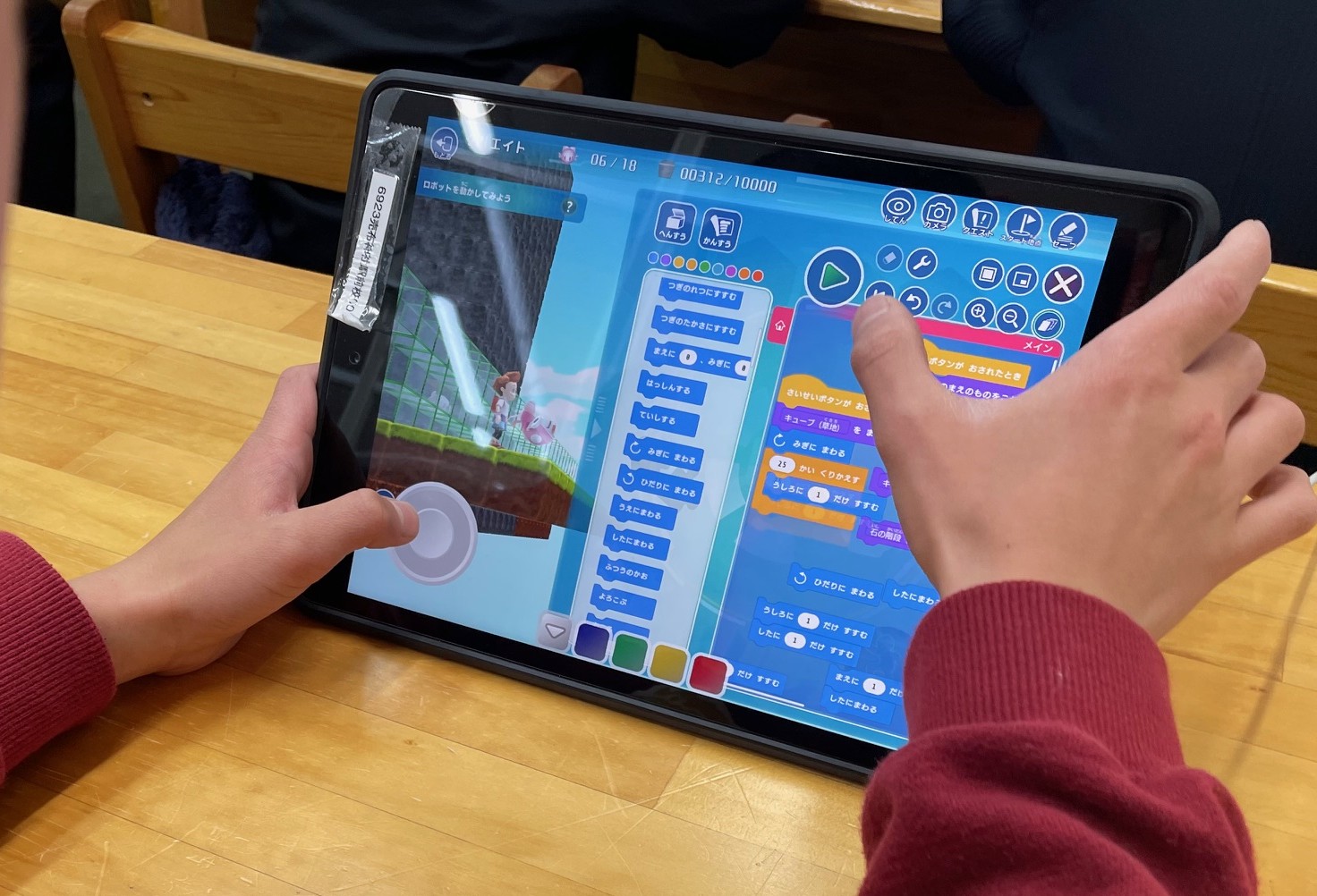 使用している教材「Playgram」は、ゲームを遊んでいるような感覚でプログラミング的思考の育成から実用レベルの知識・テキストコーディング、国立大学受験で必須化された情報Ⅰの範囲まで触れることができる教材です。