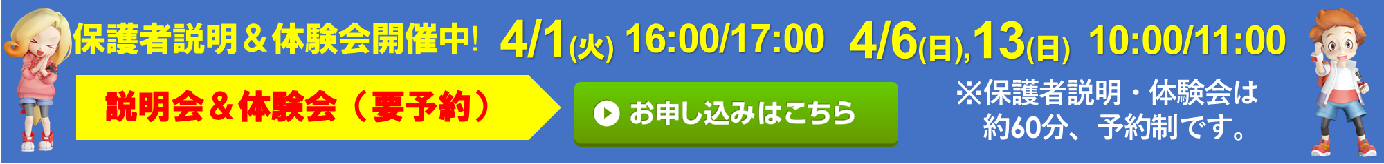 体験レッスンに加えて、お子さまの未来社会にとって大切な教育とは?スキルとは?の最新情報もお伝えいたします。