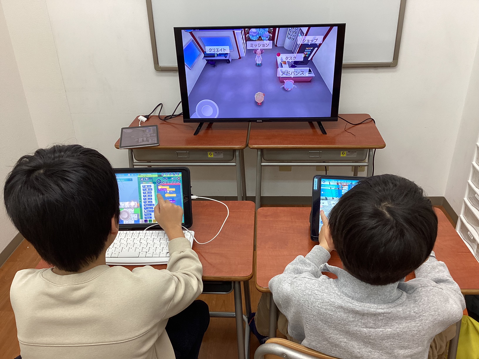 他のプログラミング教室で扱う教材よりも、とにかく子どもが夢中になる仕掛けがたくさん組み込まれています。