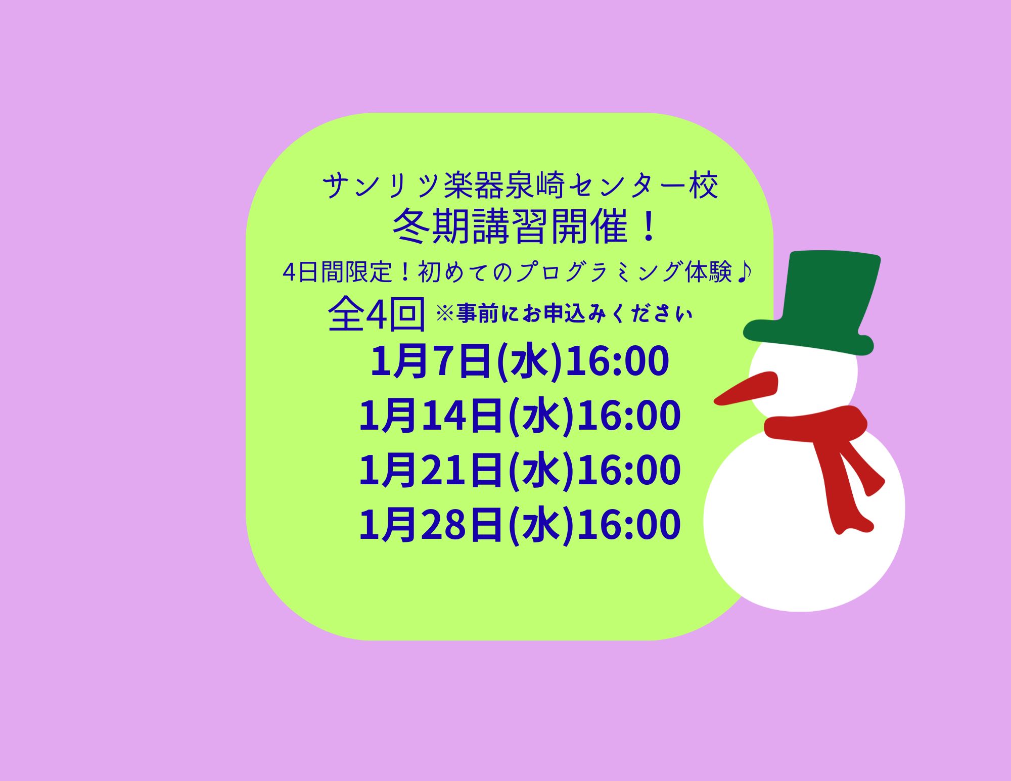 2026年1月7日(水)・14日(水)・21日(水)・28日(水) 全4日間