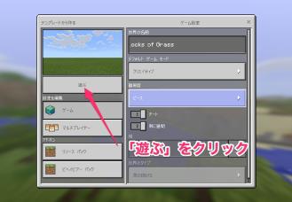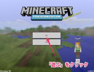 ③ログイン後は「遊ぶ」または指示されたワールドファイル(本棚のアイコン)をクリックします。