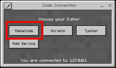 ③別ウィンドウで「Code Connection(コードコネクション)」が起動するので、「MakeCode(メイクコード)」をクリックします。