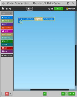④プログラミング画面が開いたら、準備完了です。これでマインクラフトの世界とプログラミングを連携できるようになります。