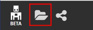 ①プログラミング画面が開いたら、左上にあるフォルダのアイコンをクリックします。