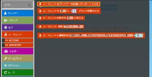 他にも「go(行く)」や「turn(曲がる)」などに変えて、エージェントの動きを変えられます。さまざまな指示を組み合わせて動かしてみましょう。