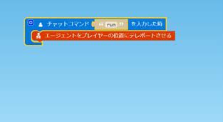②そのなかに「エージェントをプレイヤーの位置にテレポートさせる」ブロックをドラッグして組み合わせます。